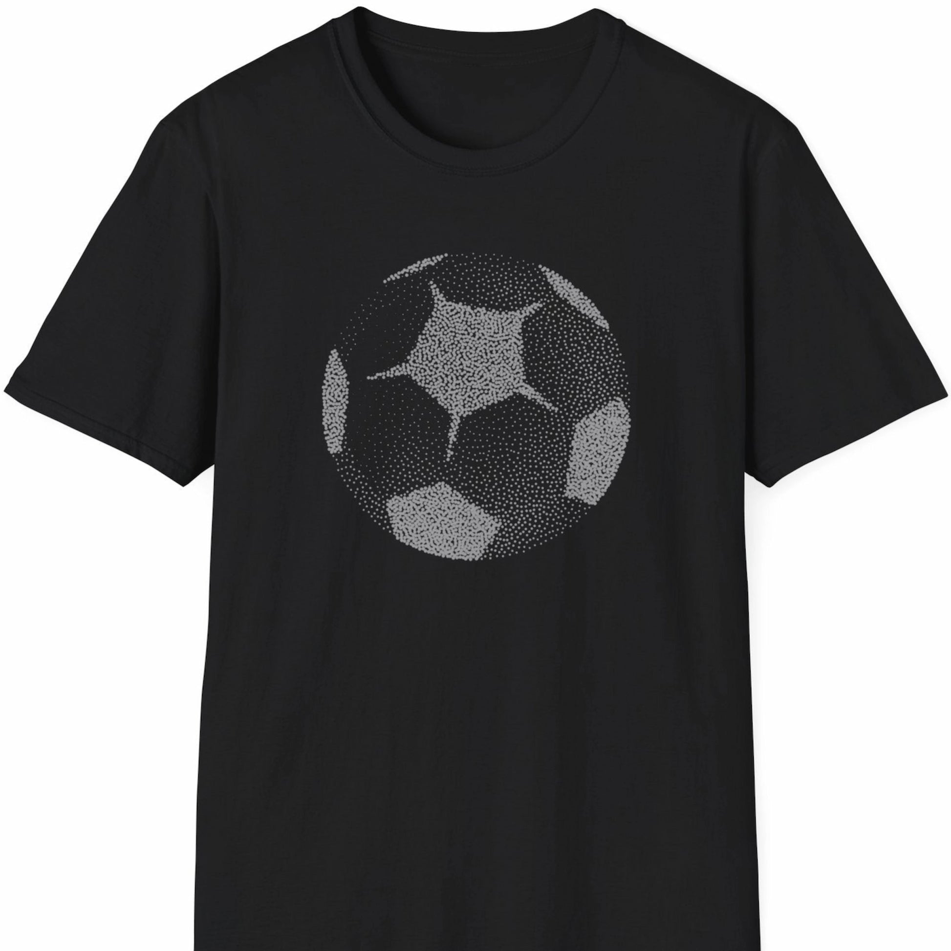 T-skjorte med illustrasjon av fotball laget i prikkete punktgrafikk.
